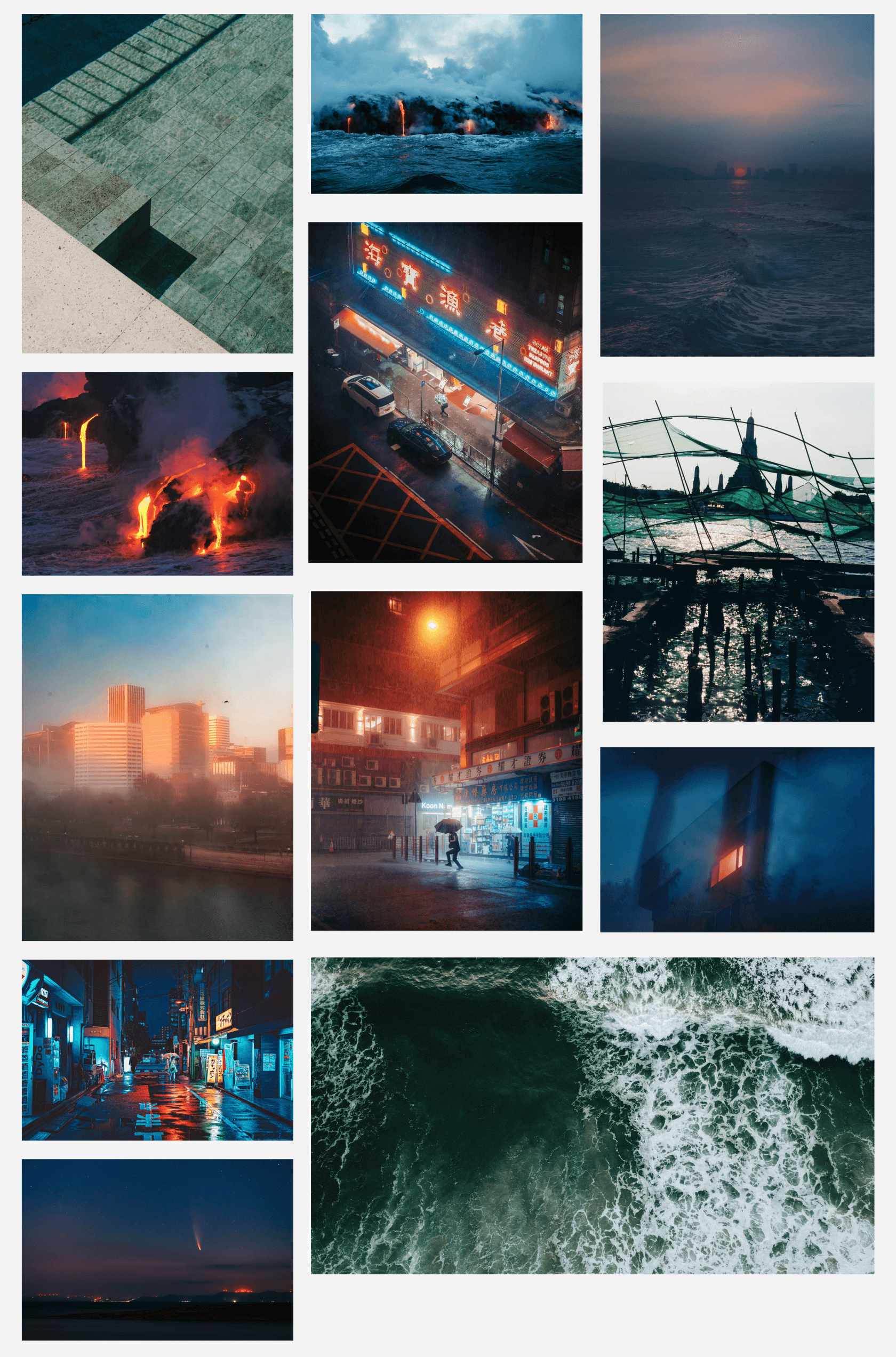 From there I started gathering inspiration in weird places. I wasn't looking at "competitor websites"; I was looking at textures, transitions, inspirational global enterprises, and media from far-flung corners of the internet (thanks Cosmos and Unsplash).